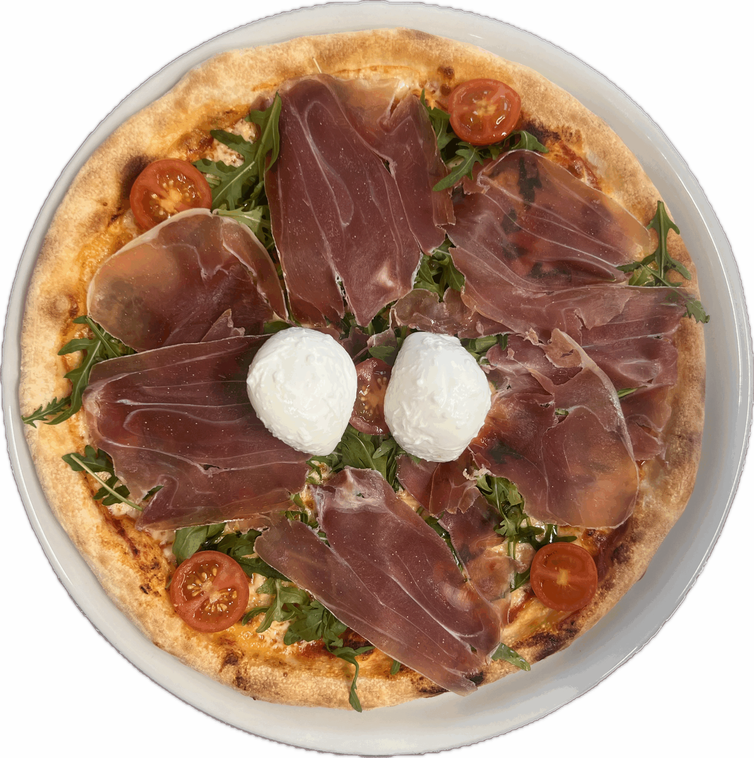 San DanielaTomaten, Mozzarella, Burrata, San Daniela Roschinken, Datteltomaten